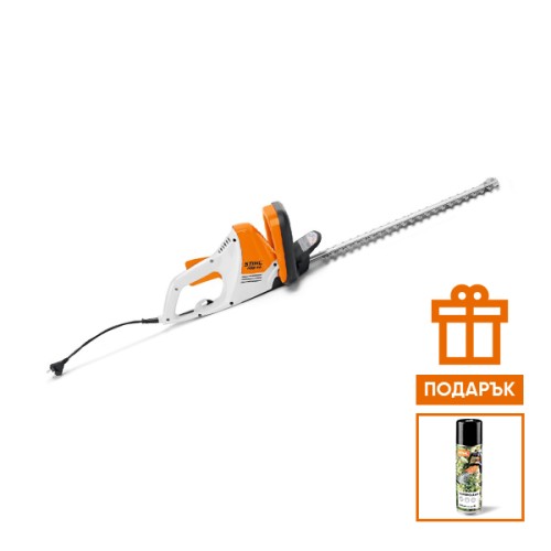 STIHL HSE 42 е удобна и лека ножица за жив плет, с която само за секунди ще оформите храстите в двора и ще подрежете живия плет в градината. Моделът разполага с блокировка на превключващия лост и двустранно режещи ножове. Машината може да се стартира с двете ръце, а специално застопоряващо приспособление не допуска неволното отделяне на електрическия кабел от уреда по време на работа. Електрическата ножица работи изключително безшумно, като е отличен избор за подрязване на декоративни храсти, живи плетове и тънки клонки.