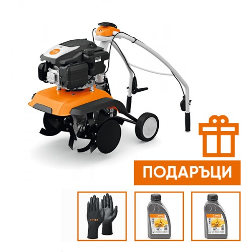 Мотофрезата STIHL MH 445 е с компактни размери и работна ширина от 45 cm за обработка на тесни и малки лехи. Нейният мощен бензинов двигател осигурява лесна и бърза работа. Фрезата е произведена с регулируем във височина спирачен шплинт за точно водене и антивибрационна система поемаща трептенията на двигателя, за да работите без умора. Машината за фрезоване е с много добър баланс и централно регулиране на кормилото. STIHL MH 445 е с доста лесен монтаж и почистване само с наклон върху транспортните колела.